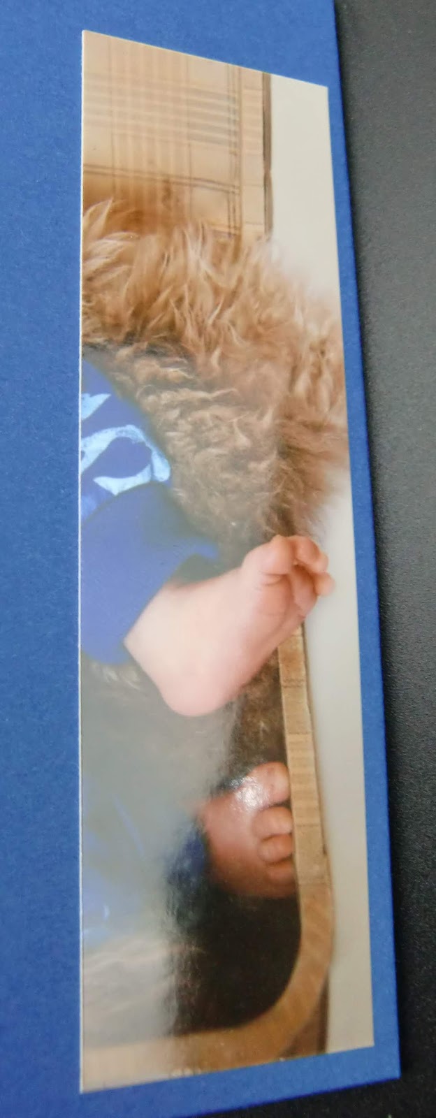 Damit das Bild auf die Karte passt, hab ich die Füße abschneiden müssen. Zum wegschmeißen waren sie mir zuschade, also sind sie auf der Rückseite gelandet.