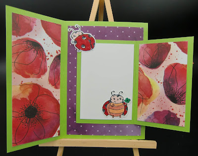 Gearbeitet haben wir mit dem SAB-Gastgeberinnenset GLÜCKSKÄFER und dem DSP MOHNBLÜTENZAUBER.