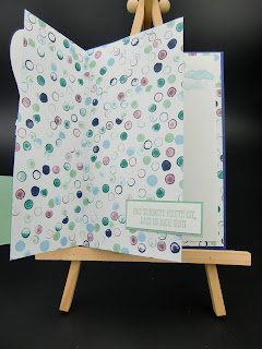 Ich habe nach Sonjas Anleitung eine Stufenkarte nachgewerkelt. Und das neue Produktpaket über den Wolken verwendet.